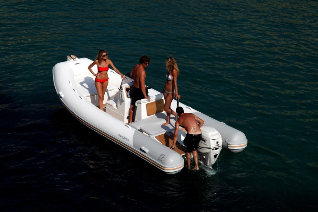 Discover the Zodiac Medline 5.80 – a stylish, practical, and comfortable RIB, perfect for day trips. With capacity for up to 11 people, we recommend it for 8–9 for greater comfort. It features a small solarium, a bimini, and excellent performance on the water.