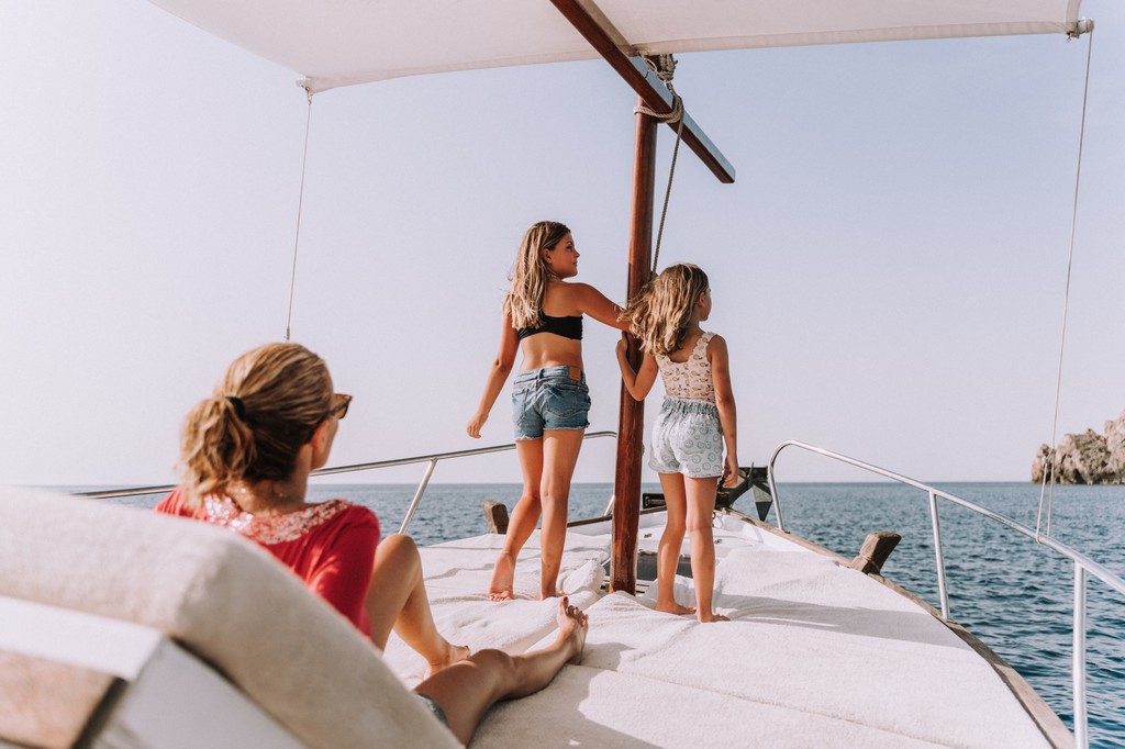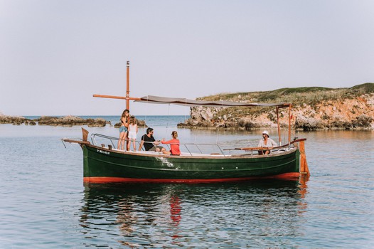 Soberano is a llaut, Menorca's original fishing boat. Its design is totally different from the rest and it is unique on the island. In 2018 we did a complete refit leaving her ready to provide services to tourists in a comfortable way. As you can see in the pictures she has a large sundeck that occupies more than 60% of the boat and the rest is a large saloon where 6 people can comfortably sit and eat. It is a boat designed for the Day Boat, to cover the needs of a day tour visiting coves, taking baths and eating and drinking. The boat has a canopy of more than 7 metres ensuring shade at every stop. It has an emergency toilet.