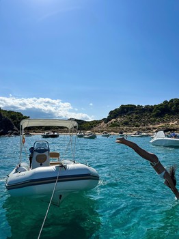 The Zodiac Medline 500 “Curri” is a practical and easy-to-handle boat—ideal for anyone looking to hire a boat in Menorca with the required licence and enjoy total freedom at sea.