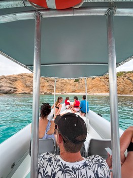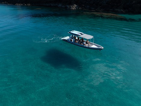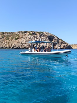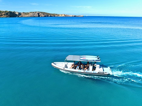 The activity takes place aboard Musquit, a powerful and agile speedboat, departing from the Port of Addaia and always accompanied by a professional skipper. The boat can accommodate up to 12 people, so the experience is completely private for your group.