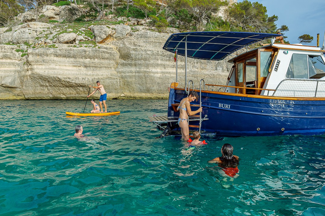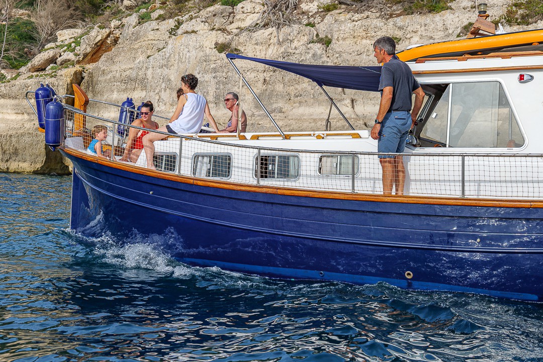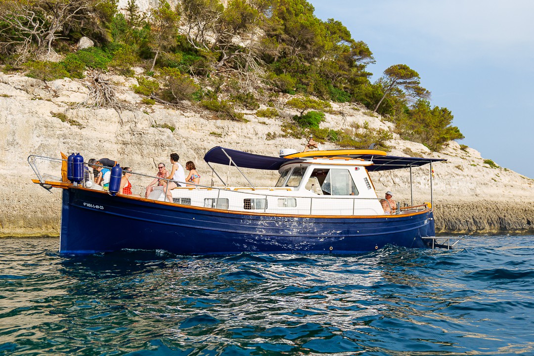 En esta opción, podréis alquilar el barco compartiendo gastos con un máximo de 12 personas, lo que permite disfrutar de la experiencia a un precio muy reducido, ideal para quienes quieren conocer Menorca desde el mar sin renunciar a la magia de navegar en un llaut tradicional menorquín.