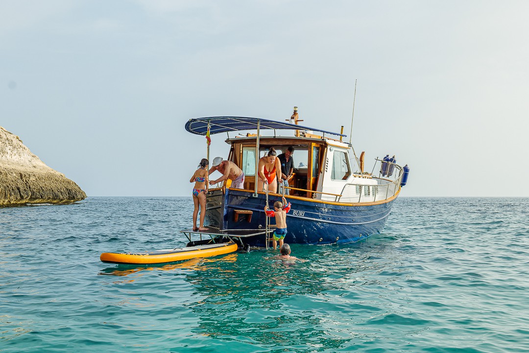 Acompañados por nuestro patrón, tú y tu familia o grupo de amigos navegaréis por la costa, combinando navegación y paradas en calas de aguas cristalinas y turquesas, eligiendo en cada momento dónde parar y cuánto tiempo quedaros.