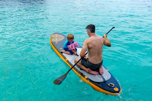 • Deux tauds (avant et arrière) orientables pour s'abriter du soleil et de l'ombre